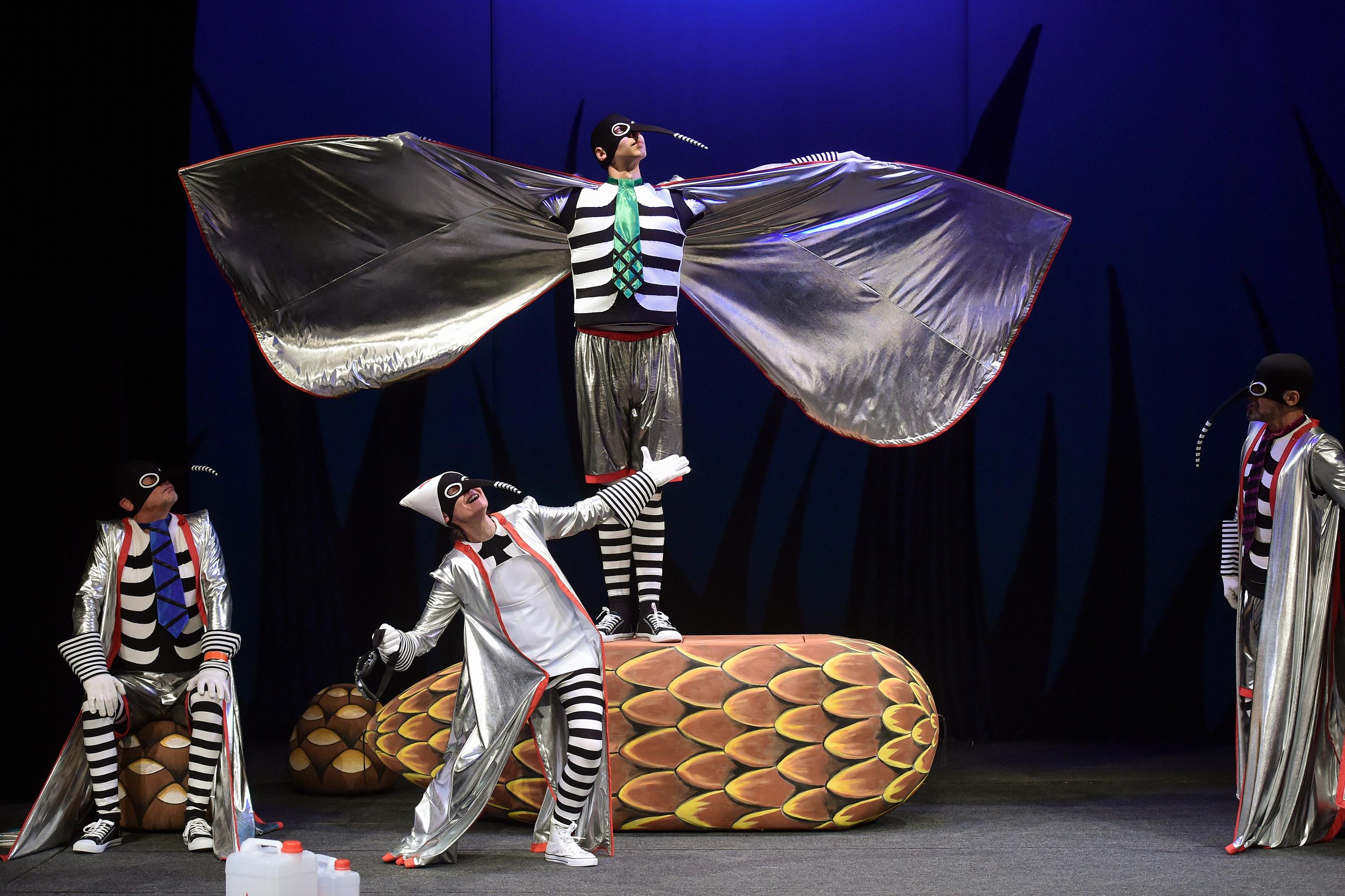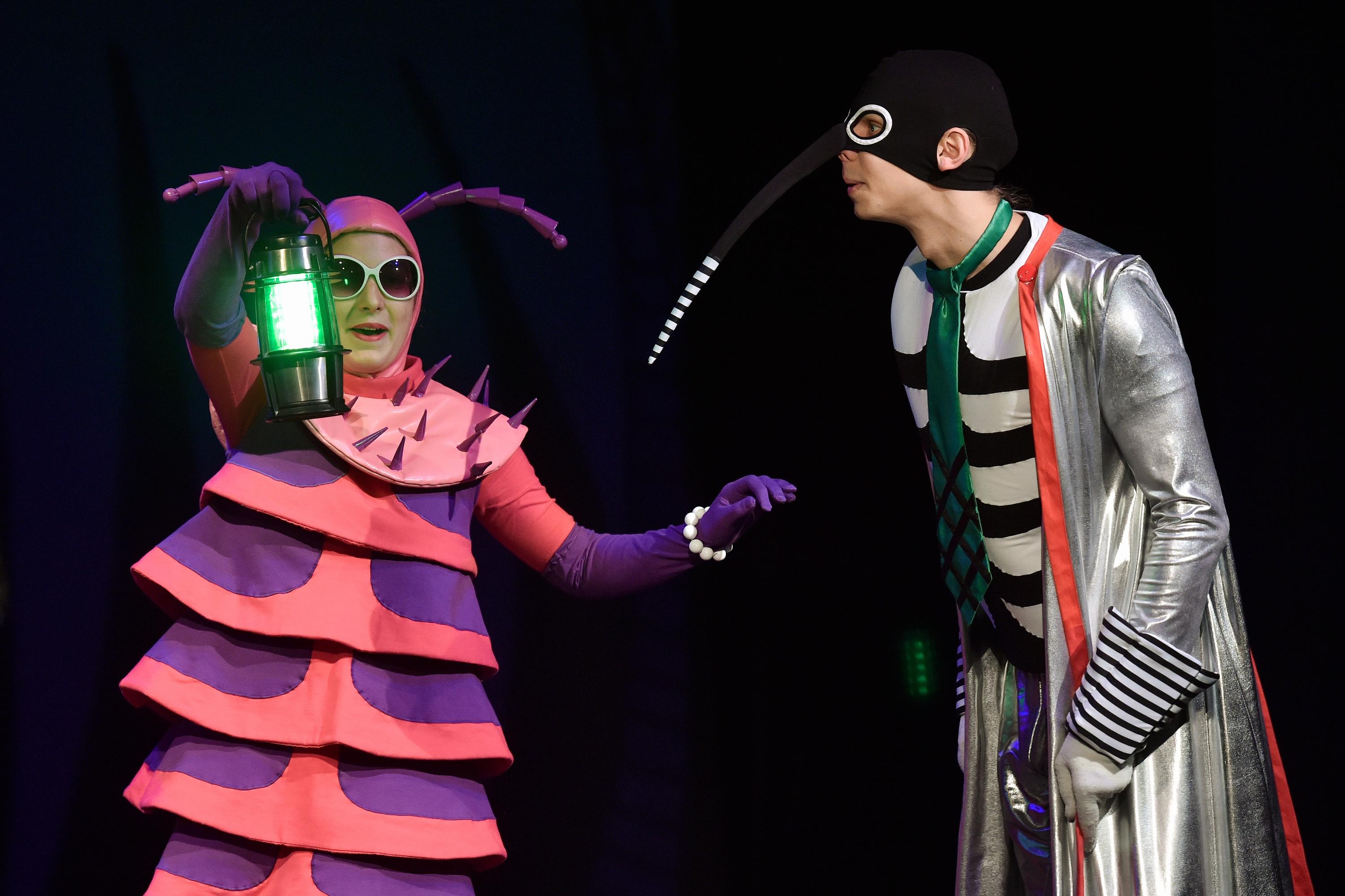 V divadelních představeních pro děti se to obvykle doslova hemží zvířecími postavami. Jenom v Naivním divadle mohli diváci v posledních letech na jevišti zahlédnout srnku, jelena, koně, velblouda, berana, hrocha, dále psy, kočky, lišky, velkou spoustu ryb a ještě více myší. Dokonce i na hada došlo. Ale teprve v roce 2016 získali svůj pohádkový prostor na jevišti NDL i zvířátka, která jsou možná méně vidět, ale o to častěji se s nimi v životě potkáváme: komáři.