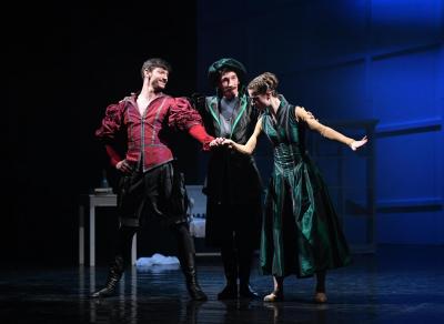 délka představení cca 1.50 hod. Slavná divadelní hra Wiliama Shakespeara v taneční podobě neoklasického tance. Příběh se odehrává v italské Padově, kde se bohatý kupec Baptista snaží provdat své dcery Biancu a Kateřinu. O něžnou a křehkou Biancu je nemalý zájem, jenže vzpurná a nepřístupná Kateřina je starší, tudíž se musí provdat dříve, nežli Bianka. Jinak by zůstala otci doma “na ocet“. Jediný, kdo se odváží si drzou Kateřinu vzít je veronský šlechtic Petruccio. Podaří se mu zklidnit láteřivou semetriku Kateřinu a udělat z ní pokornou a reprezentativní choť??? více o tomto představení... | |||||||||