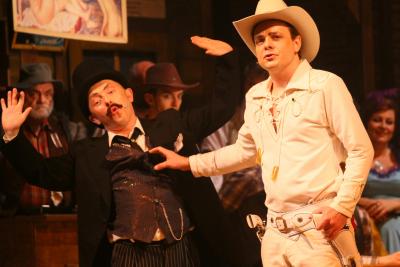 | V ústeckém divadle budou hrdinové muzikálu pít Kolaloku (která se tak báječně loká!), o pořádně „hustý“ dým v baru se postará nádherná Tornado Lou s neméně krásnými barovými tanečnicemi, budeme svědky rvaček, přestřelek a vzrušujících partiček pokeru, ničemové nám, v rozporu s dnešními poznatky medicíny, budou tvrdit, že „alkohol, podávaný v malých dávkách, neškodí v jakémkoli množství“, a bezpráví bude trestat neposkvrněný hrdina v ještě neposkvrněnějším bílém kostýmu na bělostném oři. Nenechme se však mýlit dokonalým vzhledem našeho hrdiny: kolty Limonádového Joa visí vždy proklatě nízko a jeho muška, nezkalená výpary alkoholu, je vždy zcela přesná. Jako Horáce Badmana alias Hogo Fogo uvidíte Tomáše Brázdu, který byl za tuto roli nominován na Cenu Thálie 2016. více o tomto představení... | |||||||||||