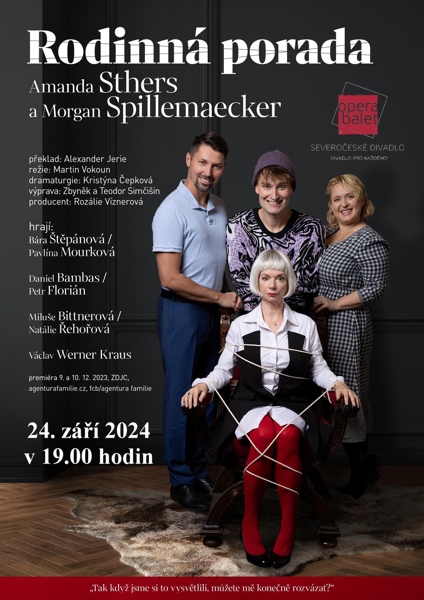 ZÁŘÍ 2024 24. ÚTERÝ začátek v 19:00 hodin | A.Sthersová, M. Spillemaecker:Rodinná porada | ||||||