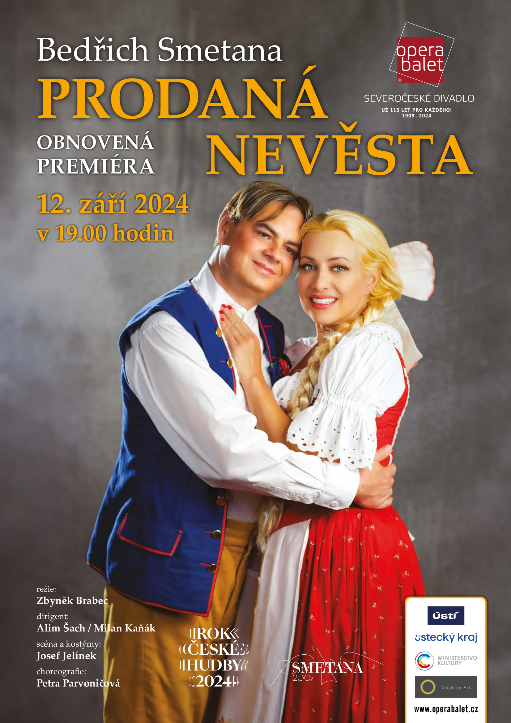| Na naše jeviště se vrátila česká klasika nejklasičtější – Smetanova Prodaná nevěsta. Jestliže jsme v září 2009 nabídli pro srovnání původní verzi této opery ve tvaru, jak byla premiérována 30. května 1866 v pražském Prozatímním divadle – tedy ve dvou jednáních, bez mnohých dnes známých hudebních čísel, ovšem s operetně laděným kupletem Principála a Esmeraldy „Ten staví se svatouškem“ a s mluvenou prózou místo později vžitých recitativů, tentokrát přinášíme skladatelovu verzi finální, jak k ní dospěl po třech návratech a mnohém pilování v letech 1866–1869. Poslední revize Prodané nevěsty byla premiérována 25. září 1870. Ač původně Smetana zamýšlel vytvořit lehkou, avšak kvalitní českou operetu, jeho tvůrčímu principu trvalé snahy po obsahové i formální dokonalosti díla můžeme děkovat za vznik jedné z nejpopulárnějších a nejhranějších českých oper vůbec. více o tomto představení... | |||||||||||