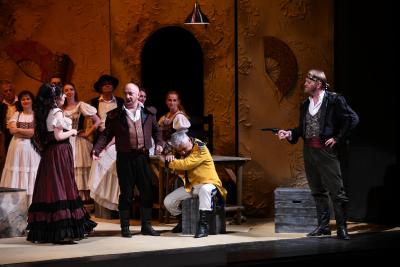 | Toto mistrovské dílo neustále fascinuje nádhernou barevností orchestru, strhující dramatičností i úžasnými áriemi. Libretisté Henri Meilhac a Ludovic Halévy se inspirovali rozsáhlou novelou Prospera Meriméea - příběhem hrdé a sebevědomé femme fatale, rafinovaně předvádějící svou ženskost a smyslnost, jejíž svádění dohání hodného muže k pozvolnému úpadku. Vášně převedené Bizetem tak mistrně do tónů dávají lehce zapomenout, že skutečně „svobodná“ láska, jak ji se smrtícím účinkem požaduje hlavní hrdinka, nemůže existovat. Opera je nastudována ve francouzském originále. Režie se ujala Andrea Hlinková. Účinkují sólisté, sbor, balet a orchestr Severočeského divadla v Ústí nad Labem. více o tomto představení... | |||||||||||